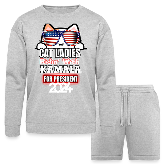 Cat Ladies ridin with Kamala Harris for presidents. Bella + Canvas Unisex Sweatshirt & Short Set